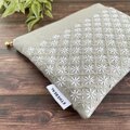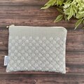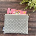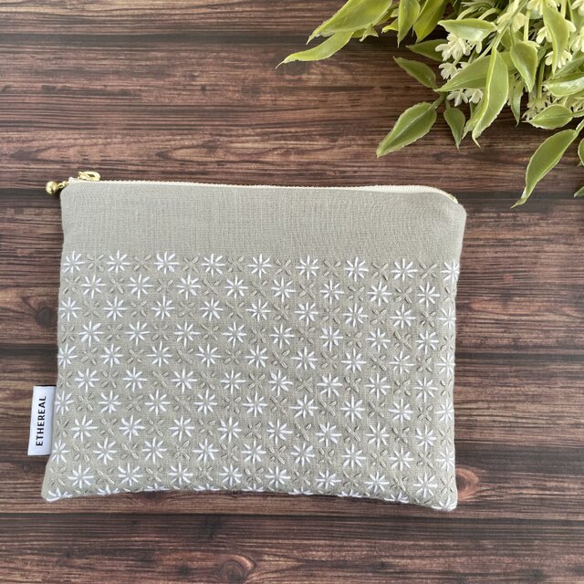 刺し子の小さめポーチ(淡いグレー)/通帳ポーチ/フラットポーチ