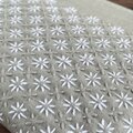 白い刺し子糸でお花のような模様と、