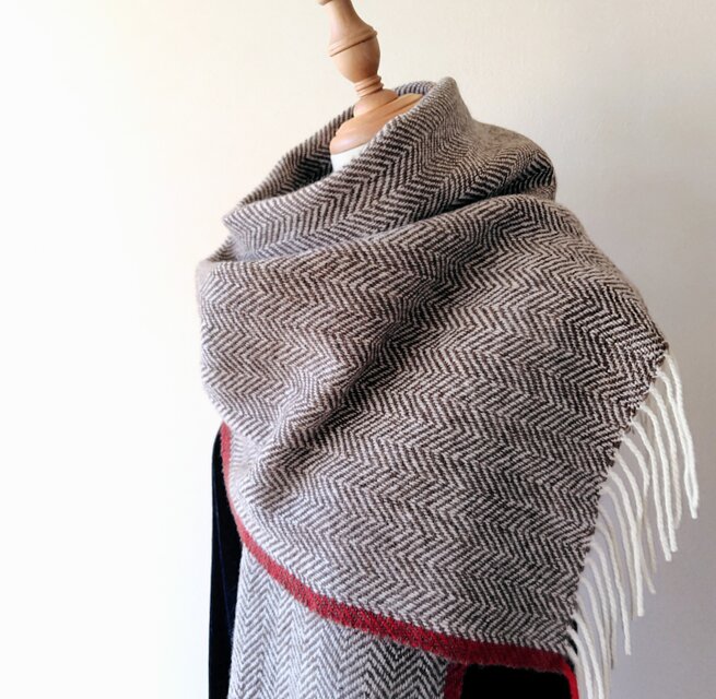 北欧手織り|ぬくもりを纏う ヤクとラムウールのヘリンボーンマフラー(ライトブラウン)【受注制作】