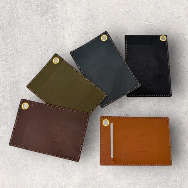 ・仕様:カードポケット(表×1/裏×1)、ハトメ金具(リング・紐取り付け可)
