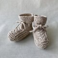 【出産祝いに】手編みベビーブーティー(3ヶ月〜)オーガニックコットンリネン薄茶色 三つ編み