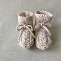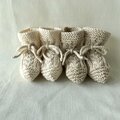 【出産祝いに】手編みベビーブーティー(3ヶ月〜)オーガニックコットン生成り 三つ編み