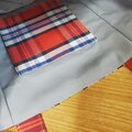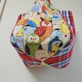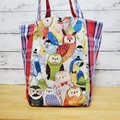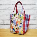 鳥柄×タータンチェック柄で4枚はぎのころっとした大きめバッグを作りました。