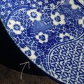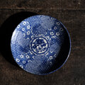 ベロ藍で素敵◆花尽くし。伊万里 花文印判七寸中皿 骨董・antiques 丁寧な暮らしに。明治時代【貫入有り】