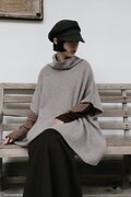 こちらの商品は、ケープのようなゆったりとしたシルエットが特徴的なハイネックトップス。