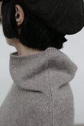 一番の特徴は、首元を締めつけない「くしゅっとしたハイネック」。ボリューム感のある首元は、お顔まわりを優しく包み、シンプルでありながらも存在感を発揮します。