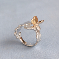 【愛されミモザ】ぽかぽか•春風リング【スターリングシルバー製/K18仕上げ/蝶&フラワーモチーフ】