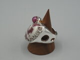 リングのサイズは15号、重さは19g、最大幅は22mm、手のひら側は5mm、金属部分は純銀です。