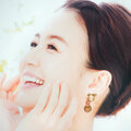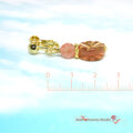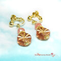 チェコビーズは透け感のある淡いピンクオレンジのディスク型に、スターのようなゴールドの花が咲き、耳元に控えめな輝きを添えます。