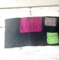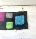 本体はメリノ羊毛を広げ、お湯と洗剤をかけてビニール手袋をつけて手で擦りフェルト化し、本体の生地を制作しています。
