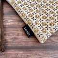 ナチュラルな生成りの生地に刺し子した、大きめ巾着袋と小さめ巾着袋のちょっとお得なセットです。