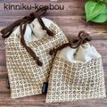 刺し子の大きめ巾着袋と小さめ巾着袋のお得なセット