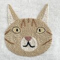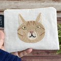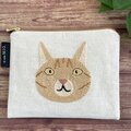 茶トラの顔を大きく、でもシンプルに刺繍した、フラットタイプのミニポーチです。