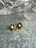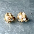フェイクパールを中央に、クリアラインストーンが煌めくゴールドトーンクリップイヤリング。