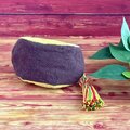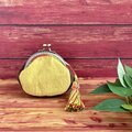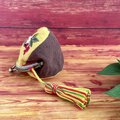 口金の縫いつけとタッセルにはカラフルな段染めの刺し子糸を使用しました。