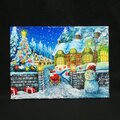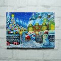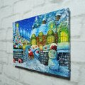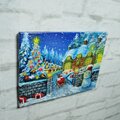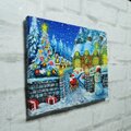 「Xmas」は、冬景色を背景にした心温まるクリスマスの風景を描いた特別な油彩作品です。この一枚は、雪が舞う中、左側には輝くクリスマスツリーとその上にきらめくスター、右側には大きな家と奥行きある小さな家、そして赤いギフトボックスが渡りを彩ります。真ん中にはサンタクロースとトナカイが描かれ、観る人にクリスマスの喜びと夢を届ける、幸福感あふれる作品です。