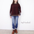 ボルドー起毛ニットと冬色ミックス袖のモックネックプルオーバー