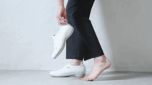 脱ぎ履きが楽チンな、結びなおす必要のないゴムひもを採用し、旅先での旅館や飲食店での下駄箱前でのスムーズさが格段に良くなっています。