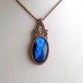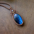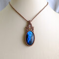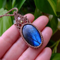 ラブラドライト(マダガスカル産) 1点ものマクラメ編みペンダントネックレス 男女兼用可アクセサリー 3596