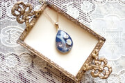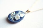ドロップ型のレジンにお花を二輪咲かせた可憐なペンダントです。