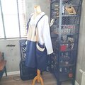 リネン×ネイビーの切替デザインエプロンが出来上がりました。