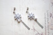 淡く可憐なグレーのレジンのお花に、コットンパール一粒とフリンジを添えました。