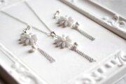 中心の花芯とコットンパールの光沢のある輝きが上品なピアス。