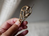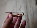 このように針とブローチの間があるのは、昔は重く厚みのある生地でドレスが作られていたからだと想像します。