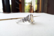 樹木のように見えるのが特徴の「デンドリティッククォーツ」を、「身に着ける植物標本」のイメージでリングにしました。