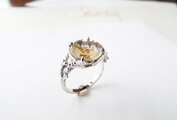 リングの正面からはルースのミモザを、指になさったらシルバーによるミモザの装飾と立体感をぜひお楽しみください。