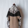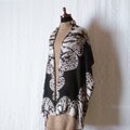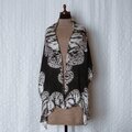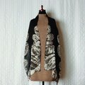 *縫い巻き上げ絞り染麻混ストール*【モクモク雲】黒