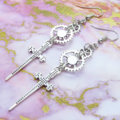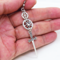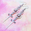 アンティークシルバー スチームパンク風ソード(剣)と歯車のスリムなロングピアス ゴシック パンク サージカル可