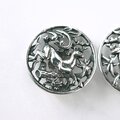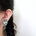 1949年にニューヨークで創業したSarah Coventry(サラコベントリー)の1958年に販売された“Woodland Flight”の黒ずみ加工が施された森林の中を駆ける鹿が象られたオープンワークデザインのラウンド型のヴィンテージイヤリングです。