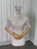 フランス風 ボレロ シークインチュール 半袖 くるみボタン オーダー可能 結婚式