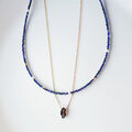 一紡(つむ)ぎの夜空、ひとひらの雫。スモーキークーツとラピスラズリのセットアップネックレス ~美しい夜