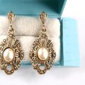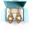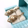 matte gold openwork victorian faux pearl dangle ヴィンテージピアス