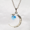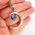 アンティークシルバーの三日月とハート型の大粒スワロフスキーのネックレス アクアマリン 長さ変更可 アジャスター可