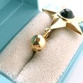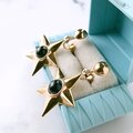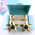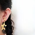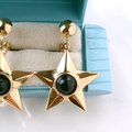 ゴールドメタルの星にブラックのプラスチックカボションがあしらわれた揺れるデザインのヴィンテージイヤリングです。