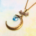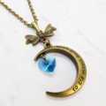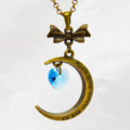 アンティークゴールド 三日月とハートのペンダントネックレス スワロフスキー(アクアマリン) 長さ調整可