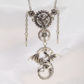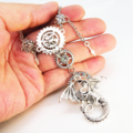 アンティークシルバー ドラゴンと歯車を組合せた多層多重スチームパンクネックレス スワロフスキー 長さ調整可