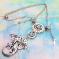 胸元に広がる、神話と機械の融合美。アンティークシルバーの多層スチームパンクネックレス