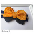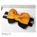 一年中おすすめ◆6cm×8cmのベビーからずっと使える和風リボンの髪飾り◆金木犀×黒色のちりめんリボン