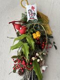 新年を迎えるのにふさわしい、縁起の良いもの、魔除けの植物を入れて、お正月飾りを作りました。