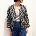 ★温かみのある ハンドブロックプリント生地を使用したキルティングジャケット。