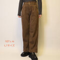 コーデュロイ+裏起毛の生地を使って仕上げたタックワイドパンツ