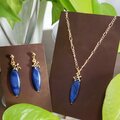 ハワイアンジュエリーデザイン❀ホヌネックレス・ピアスセット ダークブルーシェル No.525