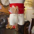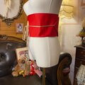 名古屋帯 リメイク サッシュベルト 飾り帯 和洋折衷 ハンドメイド レトロ 古着 L〜LL対応 深紅に咲く雅 ROB-174