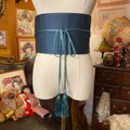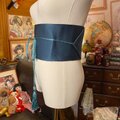 【名古屋帯 リメイク サッシュベルト 飾り帯 和洋折衷 ハンドメイド レトロ 古着 L〜LL対応 藍夜に咲く詩 ROB-175】