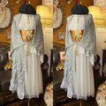 裾にあしらわれたレースが、静けさと甘さをプラスし、見る人の心をふわっと包み込むような柔らかさを演出。