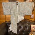 【単衣着物 2way アシンメトリー ガウン 羽織り ドレス ワンピース ハンドメイド 和洋折衷 洗える 化繊 リメイク 帯サッシュベルト レトロ 古着 風にそよぐ光の葉 KD-81】